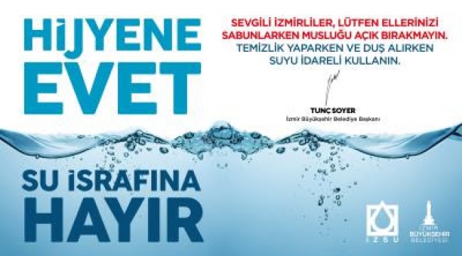 İzmir’de koronavirüs sürecinde son 4 aydaki su tüketiminin önceki yılın aynı dönemine göre 2 milyon 750 bin metreküp artması üzerine İzmir Büyükşehir Belediyesi ve İZSU Genel Müdürlüğü, “Su varsa hayat da var” sloganıyla bir kampanya başlattı. İZSU Genel Müdürü Aysel Özkan, kentte yaşayan herkesi suyu tasarruflu kullanmaya davet etti.