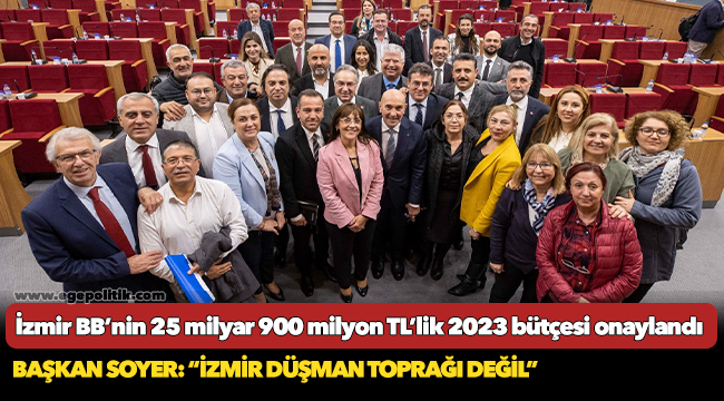 İzmir Büyükşehir Belediyesi’nin Kasım ayı olağan meclis toplantısının sekizinci birleşimi Başkan Tunç Soyer idaresinde düzenlendi. Oturumda İzmir Büyükşehir Belediyesi’nin 2023 ve sonraki yılların bütçesi ile performans programı görüşüldü. Oylama sonrasında İzmir Büyükşehir Belediyesi’nin 2023 yılı bütçesi 25 milyar 900 milyon TL olarak belirlendi. Bütçe, Cumhuriyet Halk Partisi (CHP) ve İYİ Parti’nin kabul, AK Parti ve Milliyetçi Hareket Partisi’nin (MHP) ret oylarına karşın oy çokluğuyla kabul edildi.