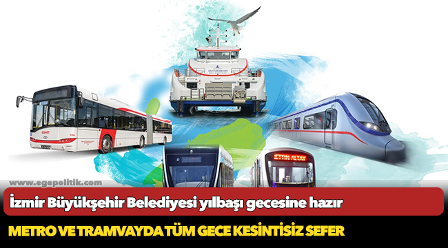 İzmir Metrosu ile Konak ve Karşıyaka tramvayları, yılbaşı gecesi sabaha kadar sefer yapacak.