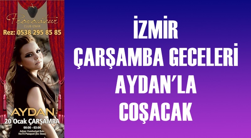 Ali İhsan ÇİFTÇİ - Bostanlı Mavra Sound'da uzun zamandır sahne alan ve performansıyla yediden yetmişe tüm müzikseverlerin alkışını toplayan Aydan Kahraman, yarından itibaren her çarşamba Alsancak'ta dinleyicilerinin karşısına çıkacak. İlk olarak 20 Ocak Çarşamba akşamı (yarın) İzmir'in en gözde eğlence mekanlarından Provocateur Club'te sahne alacak olan güzel sanatçı, Alsancak'ın da yeni yüzü olmaya hazırlanıyor. Zengin repertuvarı ve her tarz müziği başarıyla icra edebilen Aydan Kahraman, birbirinden güzel şarkılarını yarın gece Provocateur'de dinleyicilerine sunacak.