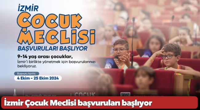 İzmir Büyükşehir Belediyesi Sosyal Hizmetler Dairesi Başkanlığı Çocuk Çalışmaları Şube Müdürlüğü tarafından sürdürülen çalışmalar kapsamında, İzmir Çocuk Meclisi’nin yeni dönem başvuruları 4 Ekim’de başlıyor. İzmir’de yaşayan 9-14 yaş arası tüm çocuklar, 4-25 Ekim tarihleri arasında, https://www.izmir.bel.tr/ ve https://www.bizizmir.com/inter