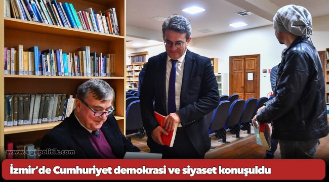 İzmir Büyükşehir Belediyesi’nin “100’üncü Yılında Cumhuriyet Söyleşileri” başlığı altında düzenlediği buluşmaların altıncısı ve sonuncusu Ahmet Piriştina Kent Arşivi ve Müzesi (APİKAM) Toplantı ve Araştırma Salonu’nda yapıldı. “Cumhuriyetin 100’üncü Yılında Cumhuriyet, Demokrasi ve Siyaset” başlığıyla düzenlenen söyleşiye Prof. Dr. Füsun Üstel ve Prof. Dr. Levent Köker konuşmacı olarak katıldı. İzmir Büyükşehir Belediyesi Başkan Vekili Murat Aydın’ın da izlediği söyleşide, Cumhuriyetin ilan edildiği yüz yıllık süreçte Türkiye’nin yaşadığı değişim ve gelişim mercek altına alındı.