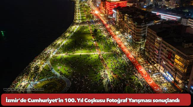 İzmir Büyükşehir Belediyesi Kültür ve Sanat Dairesi Başkanlığı tarafından düzenlenen “İzmir’de Cumhuriyet’in 100. Yıl Coşkusu” konulu ulusal fotoğraf yarışmasında kazananlar belli oldu. Yarışmaya 144 kişi toplam 608 fotoğrafla katıldı. Yusuf Tuvi, Tayfun Kocaman, Ahmet İmançer, Seda Şengök ve Mehmet Yasa’dan oluşan jüri üyeleri 20 Kasım’da yaptıkları seçim sonrası 42 fotoğrafı ödül ve sergilemeye değer buldu.