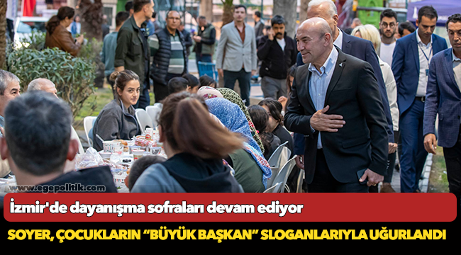 Ramazan ayının başlamasından bu yana çeşitli bölgelerde iftarlarını devam ettiren İzmir Büyükşehir Belediyesi, İzmirlileri dayanışma sofralarında buluşturuyor. İzmir Büyükşehir Belediye Başkanı Tunç Soyer, Bornova ilçesinde Kandere Parkı'nda bin 500 kişilik iftarda vatandaşlarla buluştu. Başkan Soyer'e İstanbul Beylikdüzü Belediye Başkanı Mehmet Murat Çalık, Bornova Belediye Başkanı Mustafa İduğ, CHP İzmir İl Başkanı Şenol Aslanoğlu, siyasi parti temsilcileri ve bürokratlar eşlik etti.