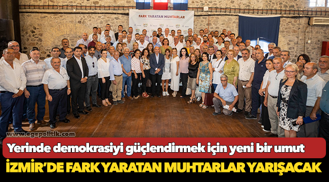 İzmir Büyükşehir Belediyesi “Fark Yaratan Muhtarlar” yarışması düzenliyor. 19 Ekim Muhtarlar Günü’nde ödüllerin verileceği yarışmanın basın toplantısında Başkan Tunç Soyer, “İzmir’in mahallelerini yeniden daha uyumlu, içten, neşeli ve bereketli bir hayatla buluşturmak için fark yaratan muhtarlar hareketini başlatıyoruz. İzmir’in mahallelerinde yerinde demokrasiyi güçlendirmek için yepyeni bir umut doğacak” dedi.