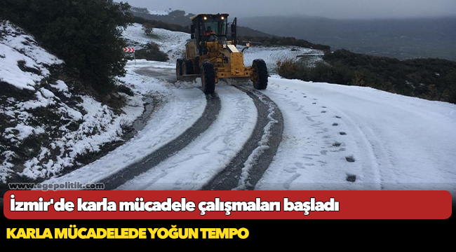 Dün akşam saatlerinde kar kalınlığının bazı bölgelerde yaklaşık on santimetreye kadar ulaşmasıyla birlikte İzmir Büyükşehir Belediyesi Fen İşleri Dairesi Başkanlığı ekipleri kar küreme ve tuz serim araçlarıyla seferberlik ilan etti. 8 adet kar küreme ve tuz serim aracı, bir adet greyder ve 40 personel ile kent merkezinde Karabağlar Kavacık yolu trafiğe tamamen açıldı. Kemalpaşa Bayraklı ve Ovacık köyleri, Kiraz'da Mavidere, Çanaklı ve Sarısu köyleri ile Tire'de Yamandere köyü ulaşıma açıldı; tuzlama çalışmalarına ise devam ediliyor. Ekipler Kiraz Altınoluk ve Kemalpaşa Beşpınar köyü Spil yolunda çalışmalarını sürdürüyor. Kar yağışının artması ihtimaline karşı ise kamyon ve iş makineleri hazır bekletiliyor.