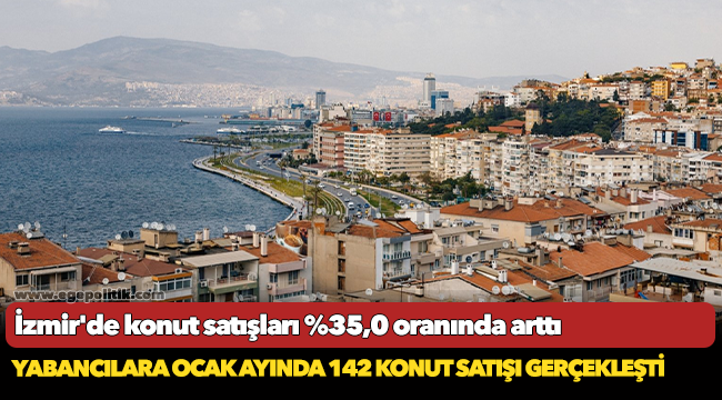 İzmir’de yabancılara yapılan konut satışı Ocak ayında bir önceki yılın aynı ayına göre %102,9 oranında artarak 142 oldu. Ocak ayında İzmir’de toplam konut satışları içinde yabancılara yapılan konut satışının payı %2,6 oldu.