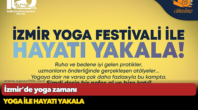 İzmir Büyükşehir Belediyesi Bornova’daki Macera Parkı’nda “Matını ve çadırını al gel” sloganıyla 17-20 Haziran tarihleri arasında yoga kampı düzenliyor. İzmir Yoga Festivali kapsamında 19-21 Haziran’da ise Kültürpark Ahşap Sahne’de gün boyu pratik ve aktiviteler yapılacak.
