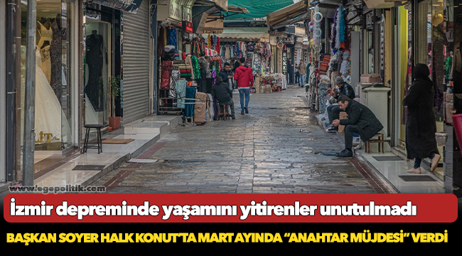 Deprem Eylem Planı’nın ortak akılla şekillendiğini de dile getiren Başkan Soyer, “İzmir’de kentsel dönüşümü 'mekânsal adalet' ilkesiyle tanımladık. Bugün bu ilkeyle hayat bulan çok değerli bir anıtın, Dilber Apartmanı’nın önündeyiz. Bu örnek yapı, İzmir’de kentsel dönüşümü kooperatifçilik modeli ile buluşturduğumuz Halk Konut Projemizin ilk uygulaması. Dilber Apartmanı ile başlayan Halk Konut Projesi’nin büyüdüğünü ve bu noktaya geldiğini görmek gurur verici. Mart ay içerisinde anahtarları teslim edeceğiz. 11 adet kooperatifin kuruluş süreci tamamlandı ve protokol tarafları ile sözleşme aşamasına gelindi. 20 binanın ise kooperatifleşme süreci devam ediyor ” diye konuştu.