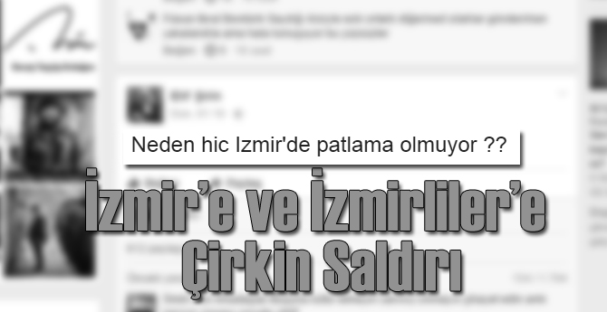 Medyaege - İstanbul'da düzenlenen 2 bombalı terör saldırısında 42 kişi hayatını kaybetmiş 153 kişi yaralanmıştı. Terör saldırısına tüm ülkeden tepki yükselirken Facebook hesabı üzerinden Neden hiç İzmir'de patlama olmuyor sorusunu soran Elif Şirin isimli kadın İzmirliler'den tepki topladı.