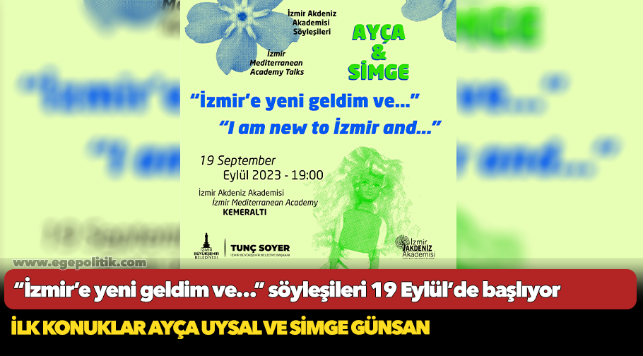 İzmir Büyükşehir Belediyesi bünyesinde faaliyet gösteren İzmir Akdeniz Akademisi, kente yeni gelenlerin Akdeniz ile ilişkisini güçlendirmeye hazırlanıyor. Akademi, yaratmak ve üretmek arzusu duyan insanları yaşamak üzere geldikleri İzmir’de bir söyleşi dizisinde konuk ediyor. 19 Eylül Salı günü başlayacak “İzmir’e yeni geldim ve…” başlıklı etkinlik, İzmir Akdeniz Akademisi’nin Kemeraltı’ndaki yeni binasında, her ay iki kez salı akşamları yapılacak.