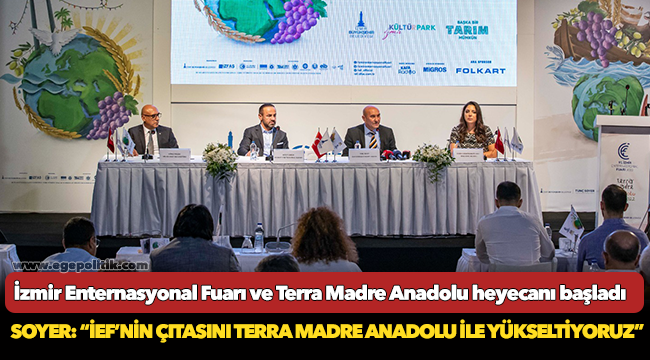 İzmir Büyükşehir Belediye Başkanı Tunç Soyer 2-11 Eylül tarihlerinde Kültürpark’ta 91. İzmir Enternasyonal Fuarı'yla düzenlenecek uluslararası gastronomi fuarı Terra Madre Anadolu’nun tanıtım toplantısına ev sahipliği yaptı.