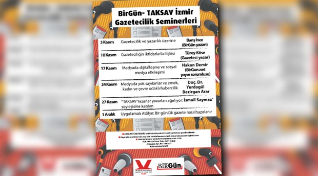 Deneyimli gazeteciler tarafından verilecek olan seminerler ve atölyeler TAKSAV İzmir Şubesi' nde gerçekleştirilecek.