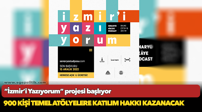İzmir Büyükşehir Belediyesi, İzmir’in kültürü, tarihi, yemekleri, müziği, sosyal yaşantısından izler taşıyan senaryo, hikâye veya podcast fikirlerinin bir eser haline dönüşmesi için “İzmir’i Yazıyorum” projesini başlatıyor. 15 Aralık’a kadar başvuru alınacak proje sonucunda 900 kişi ücretsiz olarak eğitim atölyelerine katılacak. 10 senaryo, 20 hikâye, 20 podcast ise son ürün haline getirilecek.