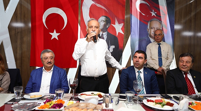 “İzmir’in kentsel dönüşüm sorununu İzmirli müteahhitler olarak siz ve halkımız çözecek” diyen Başkan Karabağ, “İzmir'deki müteahhit sektörünün açmazı büyüyememesi. Biraz önce bahsettiğim Adalet Mahallesi’ne İstanbullu firmalar geldi. ‘Nasıl bir plan yaptınız?’ diye sordu. Yapılan planlamada büyük parseller olduğu için site orjinli büyük inşaatlar çıkıyor. Buraya girebilmeniz için bir araya gelmemiz lazım. Biz Türk milleti zeybek oynamayı iyi biliyoruz. Ama bir araya gelmeyi, el ele tutuşmayı çok iyi bilmiyoruz. İzmir'i hak ettiği yere ekonomik veya imar olarak taşımamız gerekiyor. Birbirimizi desteklememiz gerekiyor. İzmir'in rantını İstanbullu, Ankaralı ya da Arap müteahhitlere bırakmayalım. Ben bu birlikteliğin sürmesinden yanayım. İzmir’in sermayesi, parası, güzellikleri İzmir’de kalsın” dedi.