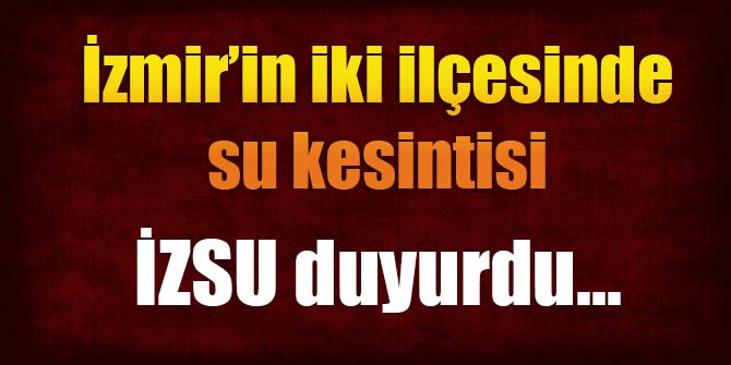 İZSU Genel Müdürlüğü, Bornova İnönü Mahallesi’nde yapacağı branşman yenileme çalışmaları nedeniyle 1013 Sokak ile Ersoy Caddesi’nin 185, 187, 189, 191, 193, 195, 197 ve 199 numaralarında 15 Mayıs 2017 tarihine kadar saat 14.00 ile 17.00 arasında su kesintisi uygulayacak. Ayrıca Konak Gültepe bölgesinde İZSU Genel Müdürlüğü tarafından yürütülen yağmur suyu çalışmaları kapsamında Mersinpınar Pompa İstasyonu durdurulacağından 2 Mayıs 2017 Salı günü saat 09.00 ile 3 Mayıs 2017 Çarşamba günü 21.00 arasında Trakya, Murat, Millet, Anadolu, Huzur, 26 Ağustos, Ulubatlı, Saygı, Atamer, Çınartepe, Zeybek, Mehmet Akif, Yavuz Selim mahallelerinde su kesintisi yapılacak.