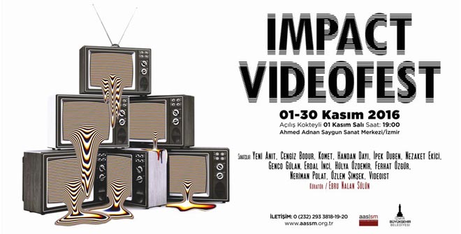 Türkiye’de 1980’lerden günümüze üretilmekte olan video yapıtlarının içerik biçim ve estetik kaygılarının günümüze özgü sanat estetiği ve eleştirisi açısından değerlendirilmesi, bu konuda öncülük yapan sanatçıların görünür kılınması ve video sanatı birikiminin bir arşivinin oluşturulması amaçlayan Impact-Videofest sergisi 1-30 Kasım 2016 tarihleri arasında SSM’de görücüye çıkacak. Ahmed Adnan Saygun Sanat Merkezi’nin 5 galerisi, bu özel çalışma için siyah kadife perdelerle kaplanacak.