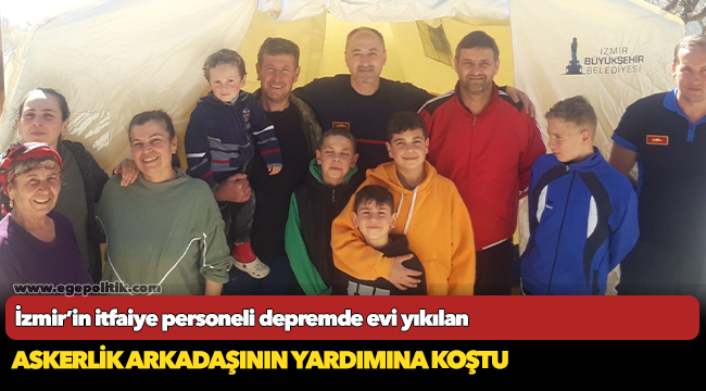 İzmir Büyükşehir Belediye Başkanı Tunç Soyer’in depremin ardından çizdiği yol haritası kapsamında Hatay’da görev alan İtfaiye Dairesi Başkanlığı Yangın ve Acil Müdahale Şube Müdürlüğü’nün personeli Mutlu Odabaş, asker arkadaşı ile ailesinin yardımına koştu. Mutlu Odabaş, 1997’de askerliği birlikte yaptığı Ahmet Aydınlı ile eşi Seza Aydınlı’nın depremde evinin yıkılması üzerine ekip arkadaşlarıyla ailenin köydeki evinin bahçesine çadır kurdu.