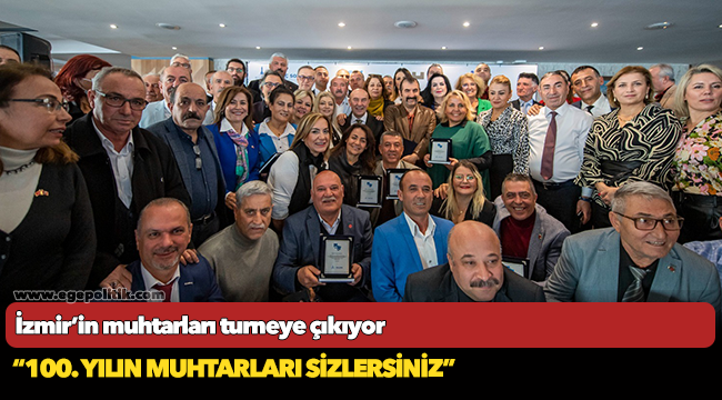 İzmir’in kurtuluşunun 100. yıl dönümü için hayatlarında ilk defa tiyatro sahnesine çıkan 100 muhtar, İzmir Büyükşehir Belediye Başkanı Tunç Soyer’den teşekkür plaketi aldı. “Kurtuluştan Demokrasiye İzmir Muhtarlar Müzikali”nin turneye çıkacağını söyleyen Başkan Soyer “İnanıyorum Türkiye size bakarak İzmir’den ilham alacak” dedi.