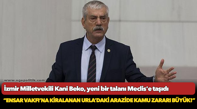 CHP İzmir Milletvekili Kani Beko, “Geçtiğimiz yıllarda, Çevre ve Şehircilik Bakanlığı tarafından yapılan plan değişikliği ile imara açılan Urla, Zeytineli Mahallesi’nde 40 bin metrekarelik denize sıfır arazinin 49 yıllığına Ensar Vakfı’na bedelsiz olarak tahsis edildiği ve Vakfın, geçmişte doğal sit alanı olan bölgede yurt, dinlenme tesisi ve okul yaptıracağı bilgisi kamuoyuna yansımıştı. İlgili bölgede var olan binalar önemli bir harcama ile tadilat ve bakımı yapıldıktan sonra Ensar Vakfı’na kiralanmıştı. Ancak alanda yer alan bu yapılar hiç kullanılmadan yıkılıyor. Çocuk tecavüzleriyle anılan Ensar Vakfı’na İzmir’in en güzel yerlerinin peşkeş çekilmesi, bedelsiz verilmesi bir yana o yapıların yıkılması büyük bir kamu zararıdır. Tüm bu kamu zararını halkın sırtına yükleyen AKP zihniyeti, durmuyor yoluna devam ediyor. Bu denize sıfır olan güzelim arazilerin yandaş vakıflara peşkeş çekilmesine karşı çıkıyor, bu yanlıştan ve kamu zararından bir an önce dönülmesini bekliyoruz” İfadelerini kullandı.