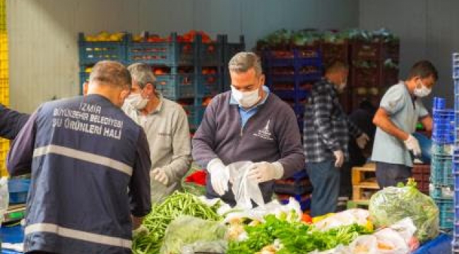 İzmir Büyükşehir Belediye Başkanı Tunç Soyer’in çağrısıyla başlatılan Biz Varız kampanyasına İzmir Büyükşehir Belediyesi Sebze Meyve Hali esnafı da sebze meyve paketleriyle destek oluyor. “Halin kapısını açtık soframızı paylaştık” sloganıyla bir araya gelen 155 kişilik hal esnafı her hafta 700 aile için soğan, patates, domates, salatalık, elma, limon gibi 18 kalemden oluşan 22 kilogramlık paketler hazırlıyor. Paketler Büyükşehir Belediyesi’nin ekipleri tarafından destek olunması gereken ailelere ulaştırılıyor.