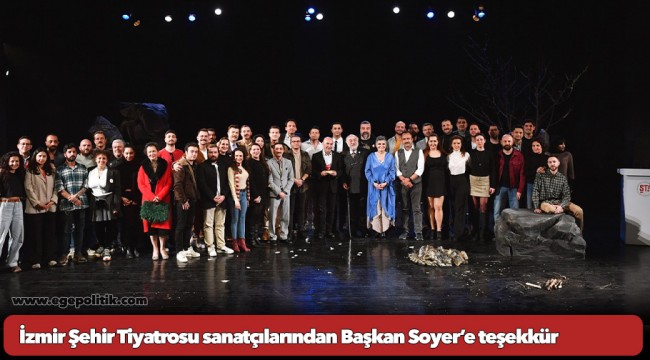 Gösterimin ardından İzBBŞT oyuncuları, tiyatronun kurulmasına önderlik eden İzmir Büyükşehir Belediye Başkanı Tunç Soyer’e sürpriz yaptı. Oyuncuların seyirciyi selamlamasının ardından İzBBŞT Kurucu Genel Sanat Yönetmeni Yücel Erten sahneye gelerek, şehir tiyatrolarının kuruluş hikayesini ve Başkan Tunç Soyer’in verdiği mücadeleyi anlatan bir konuşma yaptı. Konuşmanın ardından tiyatro ekibi tarafından Başkan Soyer’in sanat yolculuğunu anlatan video gösterildi. Dakikalarca tiyatrocular ve seyirciler tarafından ayakta alkışlanan Başkan Soyer, duygulu anlar yaşadı.