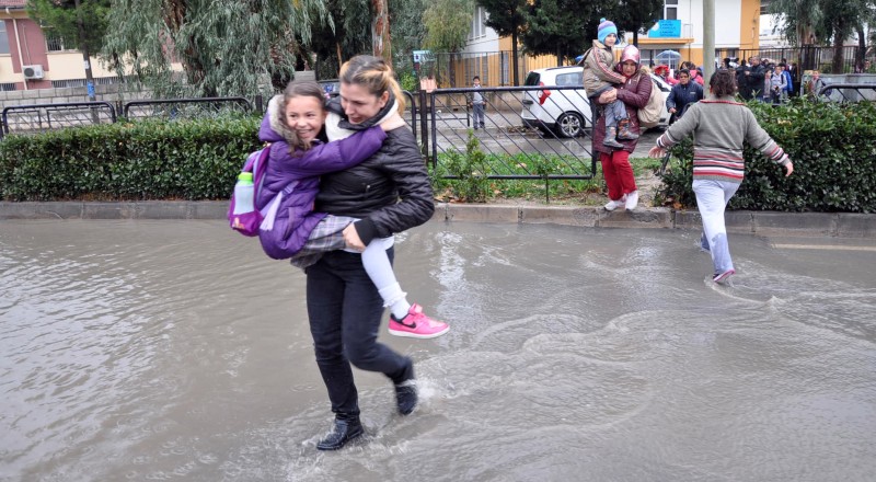 Velilerden Gonca Yüzgeç ise, "Bu bir şey değil daha önce çamurların içine giriyorduk. Görüyorsunuz çocuklarımızı kucağımızdan okulundan çıkarıyoruz. Lağımdan akan sular okulun etrafında. Belediye bir çözüm bulamıyor. Çocuklarımız hasta oluyor. Acaba yetkililer ne zaman buranın halini görüp çözüm bulacak. Her yıl evlerimizi dükkanlarımızı su basıyor" diye konuştu.