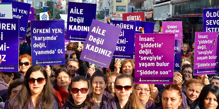 İzmirli kadınlar, kadına yönelik uygulanan her türlü şiddete ‘Hayır’ dedi. İzmir Büyükşehir Belediyesi tarafından düzenlenen “25 Kasım Uluslararası Kadına Yönelik Şiddete Hayır Günü” etkinlikleri Kıbrıs Şehitleri Caddesi’nden başladı. Kadınlar gökyüzüne özgürlük balonları uçurdu; dans gösterilerine eşlik etti, yürüyüş gerçekleştirip müzikal izledi.