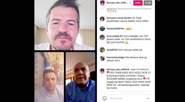 Doğduğu günden beri SMA Tip 1 kas rahatsızlığı ile mücadele veren Duru için bir kampanya başlatan ailesi, instagram canlı yayınında İZSİAD Yönetim Kurulu Başkanı Hasan Küçükkurt ile Başkan Yardımcısı Ali Talak’ı ağırladı.