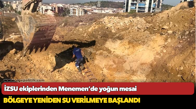 Dün gece Menemen’deki taşıyıcı hatta meydana gelen arızanın giderilmesi için İZSU ekipleri kesintisiz çalışma yürütüyor. Farklı kaynakların devreye alınması sayesinde bölgeye yeniden su verilmeye başlandı.