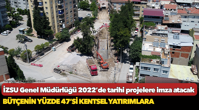 2022 yılı bütçesi ve performans programını meclisin onayına sunulmak üzere hazırlayan İZSU Genel Müdürlüğü, önümüzdeki yıl 3 milyar 800 milyon liralık kurum bütçesinin yüzde 47’sini yatırım kalemlerine ayırdı. Tarihinin en büyük kentsel yatırım faaliyetlerini hayata geçirmeye hazırlanan İZSU yağmur suyu ayrıştırma projeleri, içme suyu ve atık su arıtma yatırımlarında önemli aşamalar kaydetmeyi hedefliyor.