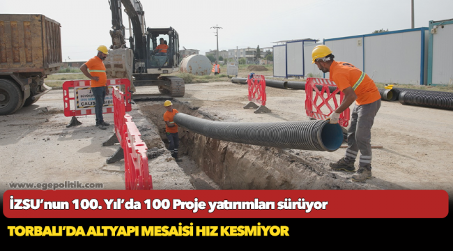 İzmir Büyükşehir Belediye Başkanı Tunç Soyer’in, İzmir’in her ilçesinde eşit hizmet ilkesiyle güçlü altyapı oluşturma hedefi doğrultusunda 27 Temmuz 2023 tarihinde temeli atılan Torbalı Subaşı Atık Su ve Yağmur Suyu Projesi büyük bir hızla ilerliyor. İZSU Genel Müdürlüğü’nün Cumhuriyet’in 100. Yılı’nda 100 Proje başlıklı yatırımları arasında yer alan projenin imalat çalışmalarında yarıya gelindi.