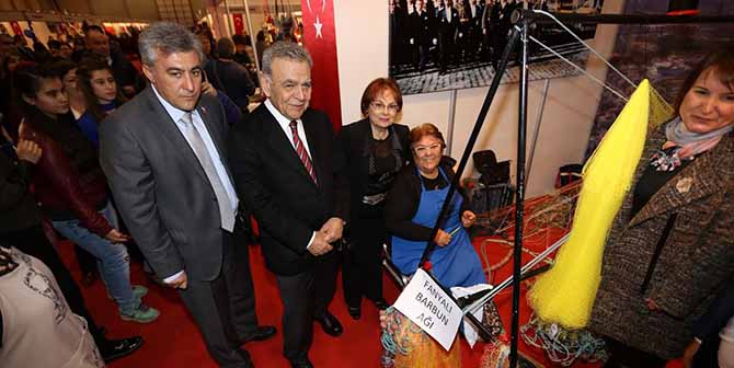 Güzelbahçe Belediyesi’nin semtevlerindeki kurslara katılan kadınların el emeği göz nurların sergilenip satışa sunulduğu standı gezen İzmir Büyükşehir Belediye Başkanı Aziz Kocaoğlu ve Güzelbahçe Belediye Başkanı Mustafa İnce, 8 Mart Dünya Kadınlar Günü’nü kutladı. Belediye stadında balık ağı yapan kadınları ve akvaryumu inceleyen Başkan Kocaoğlu, el emeklerini sergileyen Güzelbahçeli kadınları kutlayarak, teşekkür etti. Ardından belediye standında hatıra fotoğrafı çektirdi. Kocaoğlu, daha sonra Güzelbahçe Kültür Sanat ve Musiki Derneği’nin standında Tokat Baskısı yaptı, “Ben bu işi çocukluğumda okulda yapardım” dedi.