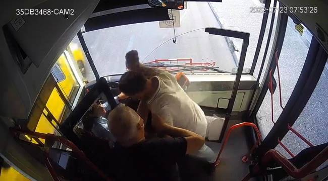 Bu sırada yolculardan G.Y. şoförden kapıyı açmasını istedi ve olumsuz yanıt alınca şoföre hakaret etti. Bunun üzerine B.A. otobüsü uygun bir yere çekerek ESHOT Şoför Destek Hattı’ndan yardım istedi. Polisin beklendiği sırada sözlü saldırının dozunu artıran zanlı, bir anda şoför koruma kapısını kırdı ve kadın şoföre yumruk attı. Yaşanan arbedede şoför B.A. sol gözünden ve kolundan yaralandı. Otobüsteki diğer yolcuların araya girmesi daha büyük bir yaralanmayı önledi. Olay anında yetişen polis, zanlıyı, kasten yaralama ve kamu malına zarar verme suçlarından gözaltına aldı. Olayın şokuyla gözyaşlarına boğulan şoför B.A. darp raporu aldı ve zanlıdan şikayetçi oldu.