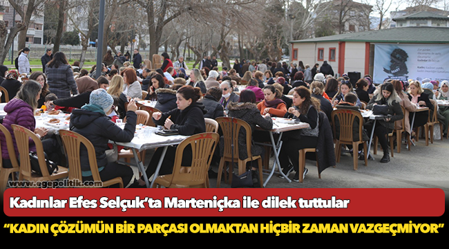 Tüm Türkiye’yi etkileyen deprem sonrasında Efes Selçuk’a gelen kadınların yanı sıra Efes Selçuk Belediyesi’nde çalışan emekçi kadınların, sivil toplum örgütleri üyesi kadınların da katılım gösterdiği kahvaltıda kadınlar bileklerine, tarihi çok eskilere dayanan bir Balkan geleneği olan Marteniçka bilekliği taktılar.