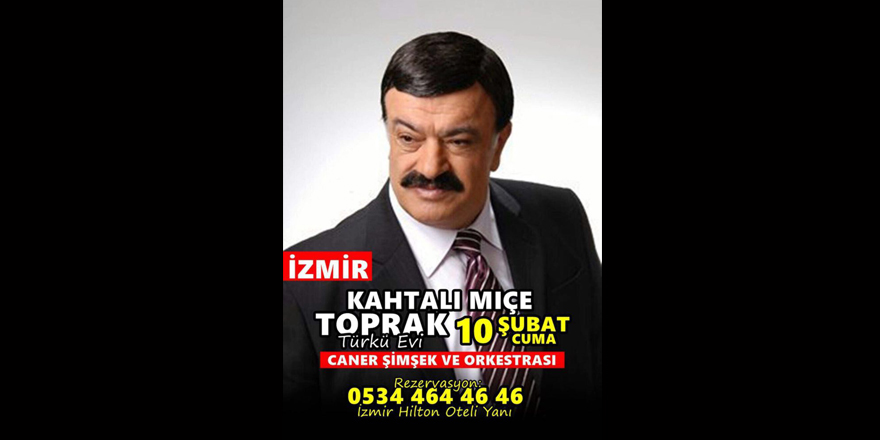 İşletmeciliğini ünlü türkücü Hayri Küçük'ün yaptığı Toprak Türkü Evi'ne bu gece Türk Halk Müziği'nin usta ismi Kahtalı Mıçe konuk olacak. Birbirinden güzel türkülerle kendisini dinlemeye gelenlere eğlenceli anlar yaşatacak olan Kahtalı Mıçe'ye Toprak Türkü Evi sahnesinde Caner Şimşek ve Orkestrası eşlik edecek.
