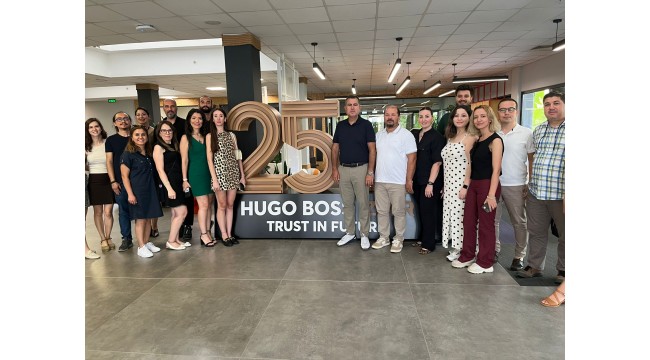 Hugo Boss İş ve Organizasyonel Gelişim Birim Yöneticisi Benay Dereli de gezi kapsamında konuklara Hugo Boss’u anlatan bir sunum gerçekleştirdi. Modayı belirleyen, sektörünün Dünya çapında öncüsü olan Hugo Boss’un 1999 yılında 448 çalışanıyla açtığı Türkiye fabrikası ile bugün 5 bin 100 çalışana ulaştığını ifade eden Dereli, “Tüm dünya markası içerisinde erkek giyiminin yaklaşık yüzde 50’lik kısmını Hugo Boss İzmir üretiyor. Türkiye fabrikası olarak kadın giyimde yüzde 37, gömlek üretiminde yüzde 25, penye olarak da yüzde 10 seviyesinde bir üretim hacmine sahibiz” dedi.