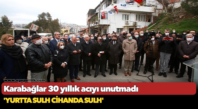 Karabağlar Belediyesi’yle Azerbaycan Türkleri ve Dost Dernekler Federasyonu tarafından Salih Omurtak Mahallesi’ndeki Hocalı Anıtı önünde düzenlenen törene, Karabağlar Belediye Başkanı Muhittin Selvitopu, CHP İl Başkan Yardımcısı Çetin Özdemir, CHP'nin İlçe Başkanı Mehmet Türkbay, Eski İlçe Başkanı Ali İhsan Yıldız, Saadet Partisi İlçe Başkanı Eymen Ünalan, DEVA Partisi İlçe Başkanı Abdullah Kaya, İzmir Büyükşehir Belediye Meclisi Üyesi Atilla Baysak'ın da aralarında olduğu siyasi parti temsilcileri, Karabağlar Kent Konseyi Başkanı Alev Ağrı, Azerbaycan dernekleri ve sivil toplum kuruluşlarının yöneticileri ve üyeleri, meclis üyeleri, muhtarlar ve vatandaşlar katıldı.