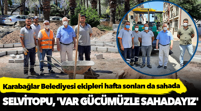 Karabağlar Belediyesi'nin her zaman olduğu gibi hafta sonları da tüm gücüyle sahada olduğunu vurgulayan Başkan Selvitopu, “Hazırladığımız program doğrultusunda 58 mahallemiz, 3600 sokağımızdaki ihtiyaçları karşılamaya gayret ediyoruz. İlçemizde yaşayan 500 bin insanımıza eşit hizmet götürmek amacıyla var gücümüzle sahadayız. Mütevazı bütçemize rağmen şantiyelerimizdeki araç parklarını, son teknolojiye sahip makinelerle güçlendirdik. Asfalt kazımayı, sermeyi, parklardaki kosa çalışmalarını bu araçlarımızla yapıyoruz. Aynı anlayışla çalışmaya devam edeceğiz” dedi.