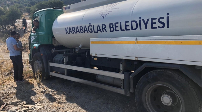 Karabağlar'ın Tırazlı Mahallesi'nde ormanlık alanda çıkan yangını söndürme çalışmaları sürerken, Karabağlar Belediyesi ekipleri de çalışmalara destek verdi.