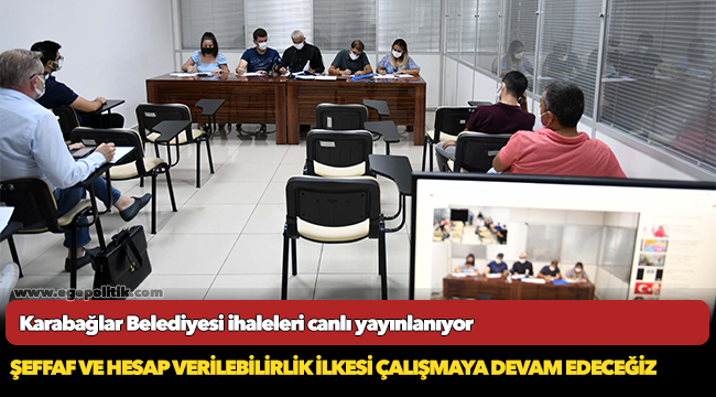 İhale süreci, katılan firma temsilcilerinin önünde yürütülüyor. Karabağlar Belediyesi, daha önce meclis toplantılarında olduğu gibi ihaleleri de sosyal medya hesaplarından yaptığı canlı yayınla kamuoyuna ulaştırıyor.