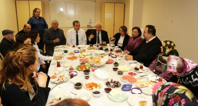 Karabağlar’da geçtiğimiz aylarda hizmete giren semt evinin kursiyerleri Karabağlar Belediye Başkanı Muhittin Selvitopu için kahvaltı organize etti. Başkan Yardımcısı Alev Ağrı, Sosyal Yardım İşleri Müdürü Pelin Erda’nın da katıldığı kahvaltıda mahalle muhtarı Ahmet Tuna da Başkan Selvitopu’nu yalnız bırakmadı.