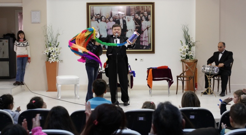Gösteriyi izleyenler arasında yerini alan Başkan Pekdaş, eğlenceli sihirbazlık gösterilerini keyif ve merak içinde izledi. Konak Belediyesi Kültür İşleri Müdürlüğü’nce düzenlenen etkinlikte Sermet Erkin’e sahnede 10 yaşındaki kızı Nazlı Erkin eşlik etti. Bu yıl sahnede 42. yılını kutlayan usta sihirbaz torbasından çıkarttığı rengarenk mendillerle, şapkasından çıkarttığı minik fareyle ve yanan ateşi çiçeğe çevirmesiyle minik gözleri kendisine hayran bıraktı. Sihirbazlığının yanı sıra esprileri ve şakalarıyla da salondaki çocukları ve annelerini kahkahaya boğan Erkin, gösterinin sonunda bol bol alkış aldı.