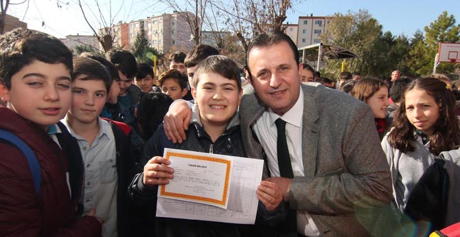 Menderes Belediye Başkanı Bülent Soylu, 2016-2017 eğitim öğretim yılının ilk dönemini tamamlayarak yarıyıl tatiline giren öğrencilere karnelerini dağıttı. Görece Mustafa Kemal İlköğretim Okulu’nda ki öğrencilerle bir araya gelen Başkan Soylu’ya çocuklar büyük ilgi gösterdi.