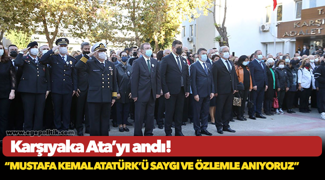 Hükümet Konağı önündeki törende Atatürk Anıtı’na çelenkler sunuldu. Saatler 09.05’i gösterdiğinde, hem tören alanındaki katılımcılar, hem de cadde ve sokaklardaki vatandaşlar, Ulu Önder Atatürk için saygı duruşuna geçti. Siren ve korna sesleri ilçenin dört köşesinde yankılanırken, duygu dolu anlar yaşandı. Ardından Karşıyaka Belediyesi, Latife Hanım Köşkü Anı Evi Özel Müzesi’nin bahçesinde “10 Kasım Atatürk'ü Anma Günü ve Haftası Sergisi”nin açılışını yaptı.