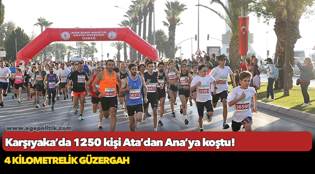 Karşıyaka Belediyesi tarafından, Ulu Önder Gazi Mustafa Kemal Atatürk’ün vefatının 83. yılı dolayısıyla düzenlenen Ata’dan Ana’ya Saygı Koşusu, bu sabah Anayasa Meydanı’ndan başladı. Koşunun startını Karşıyaka Belediye Başkanı Dr. Cemil Tugay, Başkan Yardımcısı Özlem Ceylan ve Hiltown Karşıyaka Alışveriş Merkezi Müdürü Hüseyin Koca verdi. Aralarında farklı kentlerden gelenlerin de bulunduğu, 10 ile 82 yaş arası 1250 kişinin katıldığı koşuda tekerlekli sandalyeli yarışmacılar da yer aldı. Pusetteki bebeğiyle ya da yanında köpeğiyle koşan katılımcılar da renkli görüntüler oluşturdu.