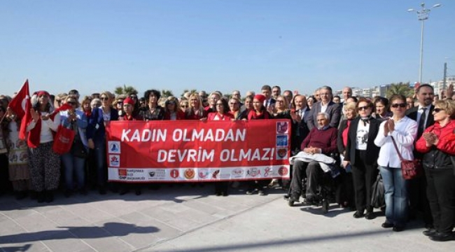Karşıyaka’da düzenlenen 8 Mart Dünya Emekçi Kadınlar Günü etkinlikleri Zübeyde Hanım’ın anıt mezarında başladı. Karşıyaka Belediye Başkanı Hüseyin Mutlu Akpınar, CHP İlçe Başkanı Uğur Yıldırım, CHP Karşıyaka Kadın Kolları Başkanı Buket Fatoş Erol, Büyükşehir Belediye Başkan Adayı Tunç Soyer ve Karşıyaka Belediye Başkan Adayı Cemil Tugay da eşleri ile birlikte törene katıldı. CHP Karşıyaka Kadın Kolları Başkanlığı ve sivil toplum kuruluşlarınca organize edilen etkinliklere bine yakın kişi katıldı.