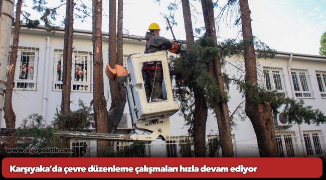 Karşıyaka Belediyesi Park ve Bahçeler Müdürlüğü ekipleri tarafından yürütülen çevre düzenleme çalışmaları kapsamında ilçe genelinde ağaç budaması yapılıyor. Sömestr döneminden yararlanan ekipler okul bahçelerinde bulunan ağaçları da budayarak, hem olumsuz hava şartlarının getireceği riskleri ortadan kaldırıyor, hem de ağaçların daha sağlıklı büyümesini sağlıyor. Yurttaşlardan ve okul yönetimlerinden gelen talepleri dikkate alan Park ve Bahçeler Müdürlüğü ekipleri çalışmaları ilçe geneline yayarak sokaklarda, mahalle aralarında ve parklarda sağlıksız büyüyen, tehlike arz eden ağaçlara yönelik budama ve sağlıklılaştırma çalışmalarını yürütüyor.