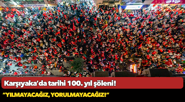 Karşıyaka Belediyesi’nin düzenlediği fener alayı ve konsere ay yıldızlı bayraklarıyla katılan binlerce yurttaş kenti adeta gelincik tarlasına dönüştürdü. Hep bir ağızdan söylenen marşların ve şarkıların coşkusu yeri göğü inletti.