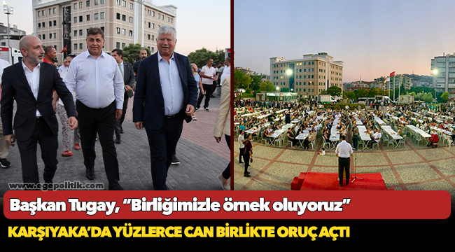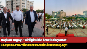 Karşıyaka’nın barışın ve kardeşliğin kenti olmaya devam edeceğini dile getiren Başkan Tugay konuşmasına şöyle devam etti: “Karşıyaka ve Karşıyaka Belediyesi; çağdaş, demokratik ve laik Türkiye Cumhuriyeti’nin kalesi ve bekçisi olma duruşundan asla ödün vermeyecek; aklın, bilimin ve çağdaşlığın yılmaz savunucusu olduğunu her zaman gösterecektir. Her türlü ayrımcılığın, ötekileştirmenin, değersiz kılma çabasının önünde durduk, duruyoruz, duracağız. Barışımızla, birliğimizle, kardeşliğimizle ve dayanışmamızla örnek olduk, oluyoruz, olacağız. Burası, Hazreti Ali’nin ‘Bana bir harf öğretenin kölesi olurum’ sözünü, akla ve bilime olan inancıyla rehber edinenlerin Karşıyaka’sıdır. İnsanlığın ‘Daha yaşanır bir dünya mümkündür’ diyerek var ettiği her değeri değerimiz olarak kabul ediyoruz. Biz bunu, bizi bugünlere ulaştıran yolları açanlara borçluyuz. Bu duygu ve düşüncelerle, bir kere daha sizleri dostlukla, kardeşlikle, insana ve yeryüzüne aynı pencerelerden bakmanın onuruyla selamlıyorum.” Tugay konuşmasını Muhyiddin Abdal’ın ‘İnsan İnsan’ şiiri ile sonlandırdı.